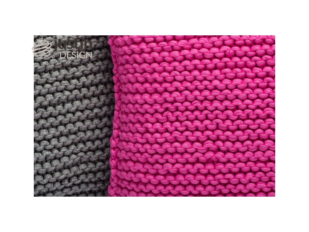 Polštářek na první pohled zaujme výraznou strukturou, která vzniká díky použití velmi silné příze.